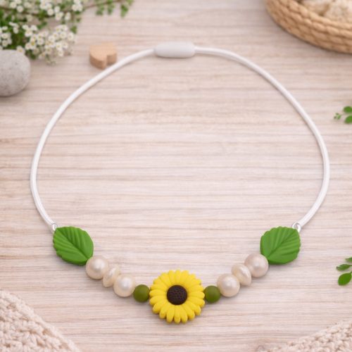 A rágcsa lánc minden eleme élelmiszer tisztaságú szilikon gyöngyökből készült, semmilyen káros anyagot nem tartalmaz, bababarát anyag.