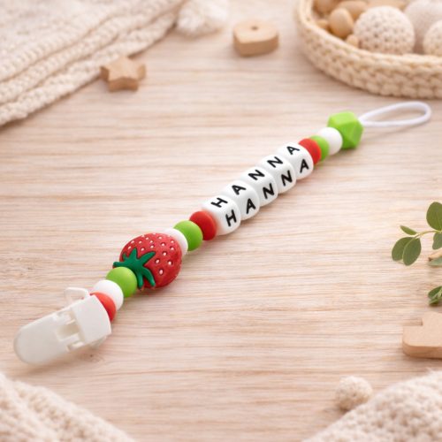 A lánc végéről a rágcsa levehető, így cumiláncként is használható.