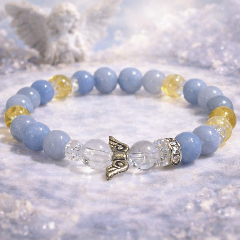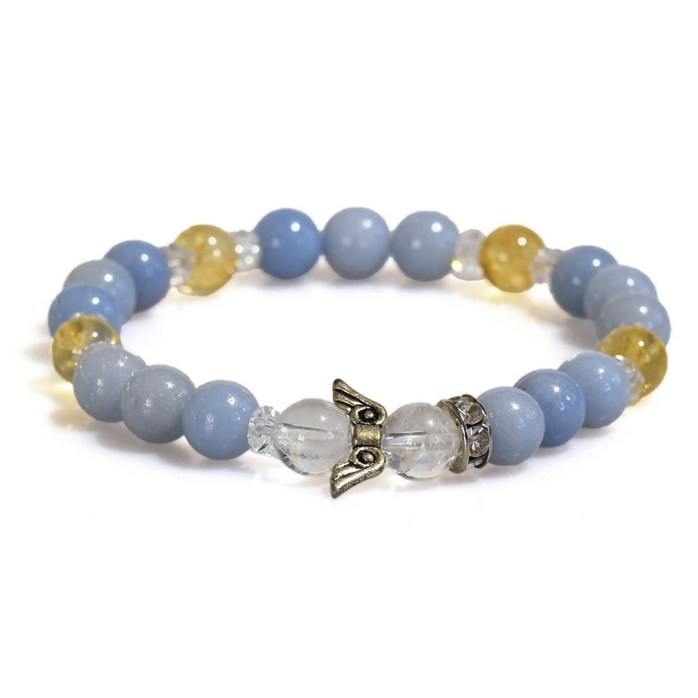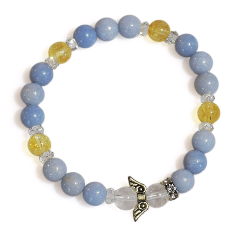 Az ékszer 8 mm.-es angelit, citrin és hegyikristály gyöngyökből készült.