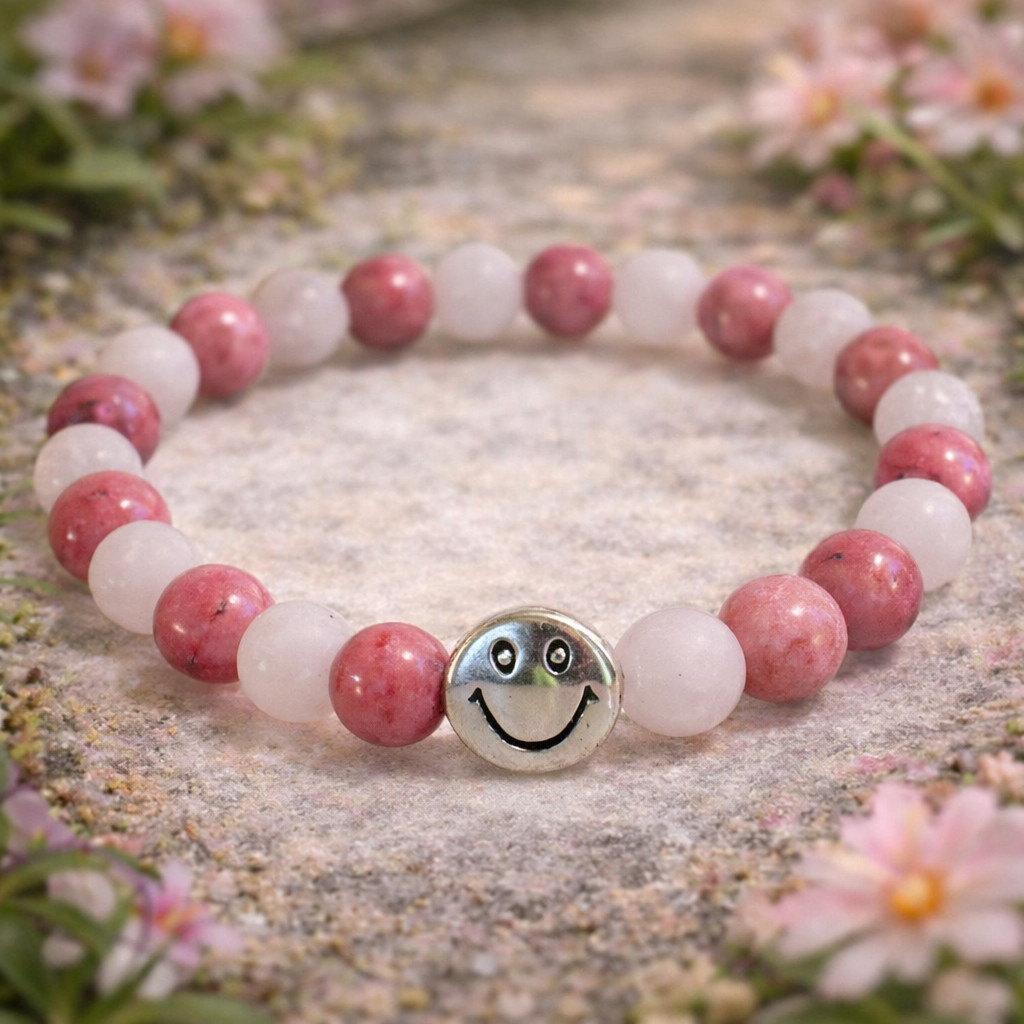 Az ékszer 8 mm-es rodonit extra világos és matt rózsakvarc gyöngyökből készült