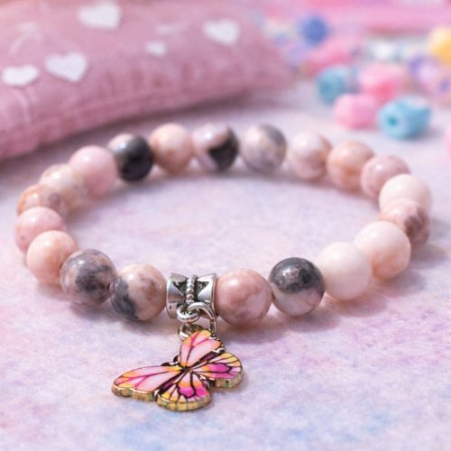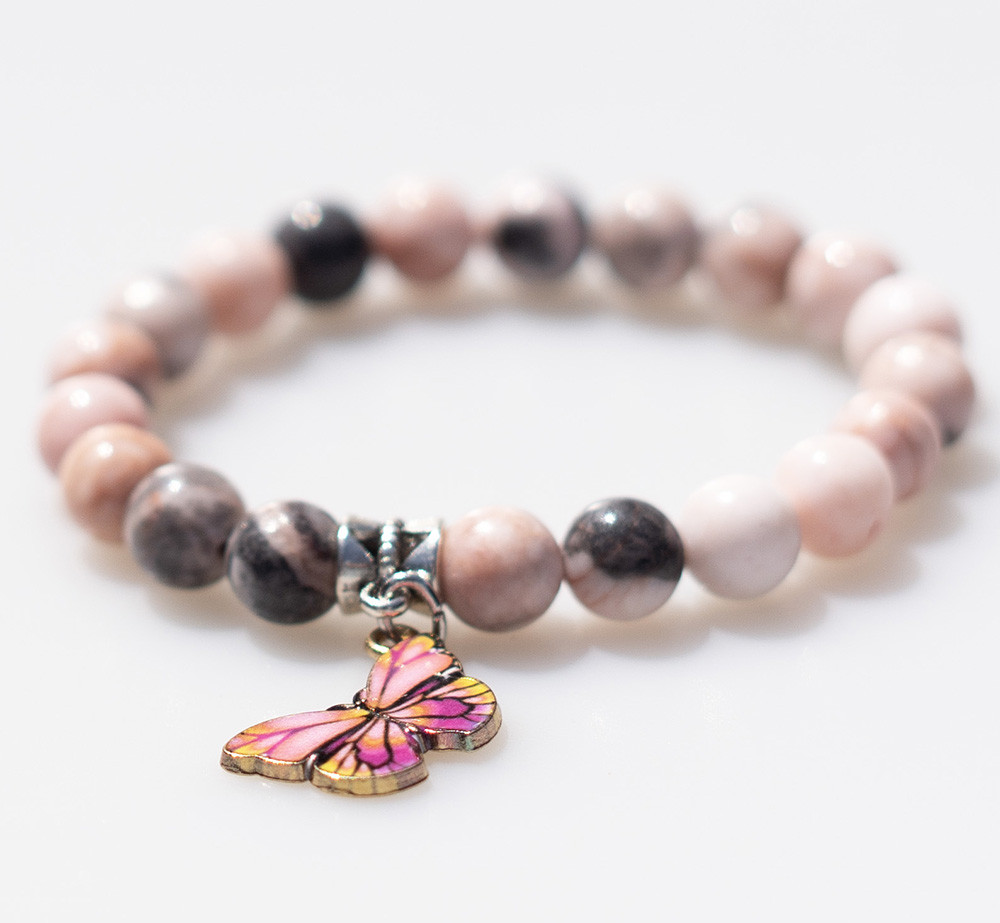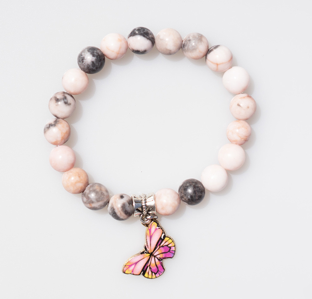 Az ékszer 8 mm-es zebra jáspis , márvány, pink gyöngyökből készült