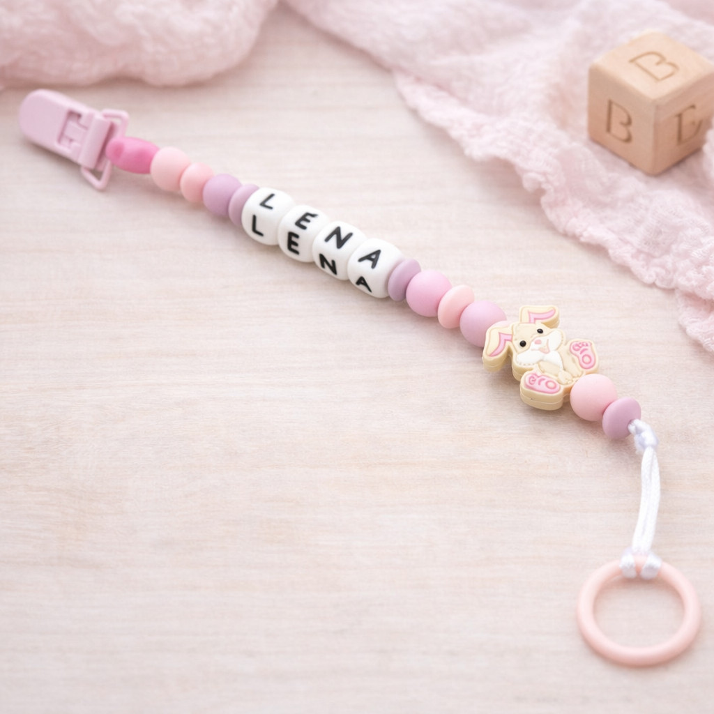 A lánc végéről a rágcsa levehető, így cumiláncként is használható.