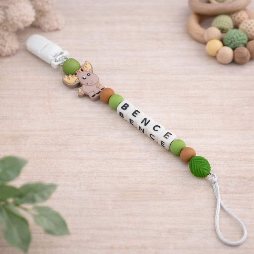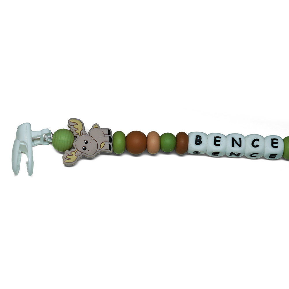 A lánc végéről a rágcsa levehető, így cumiláncként is használható.