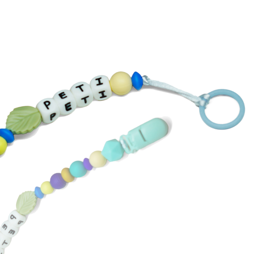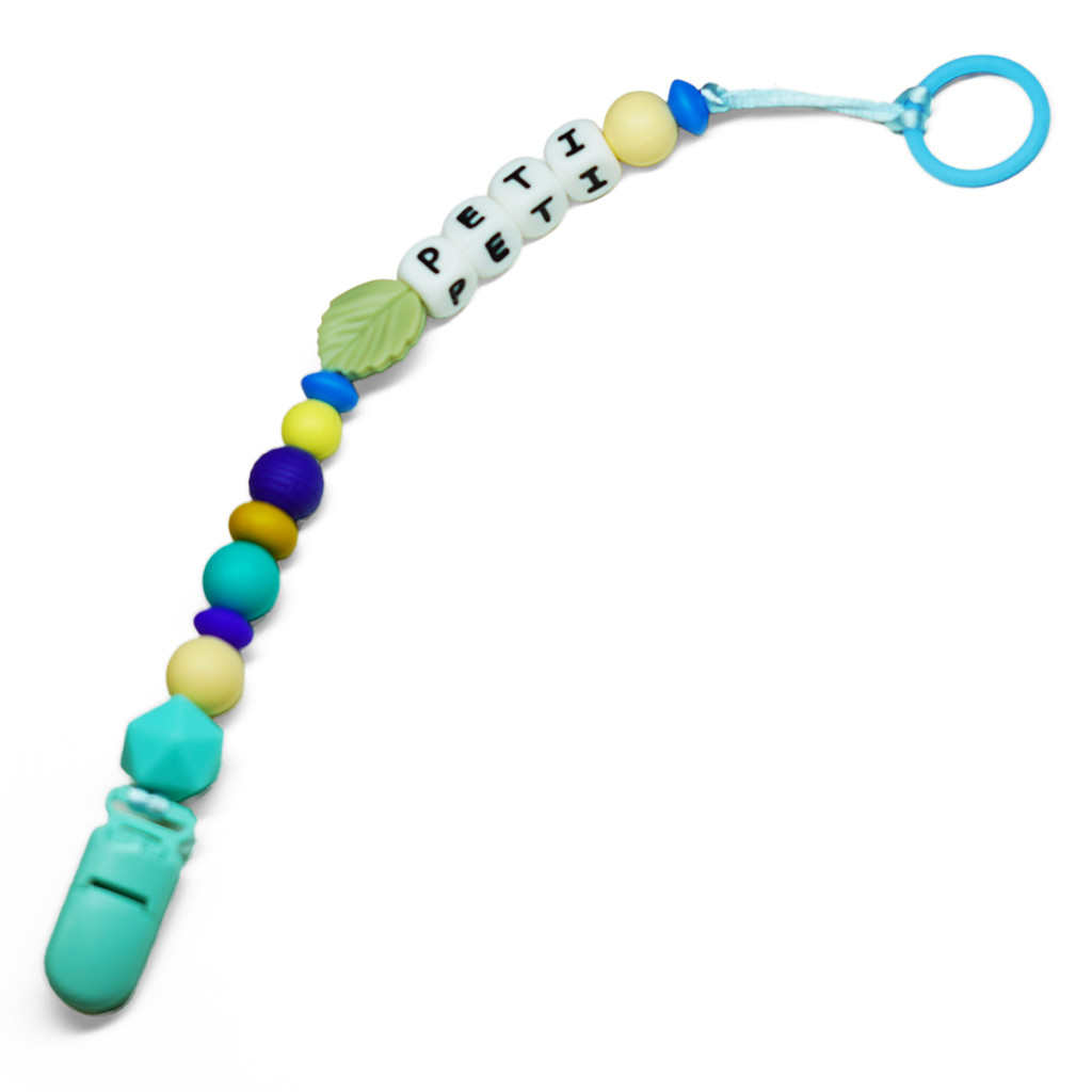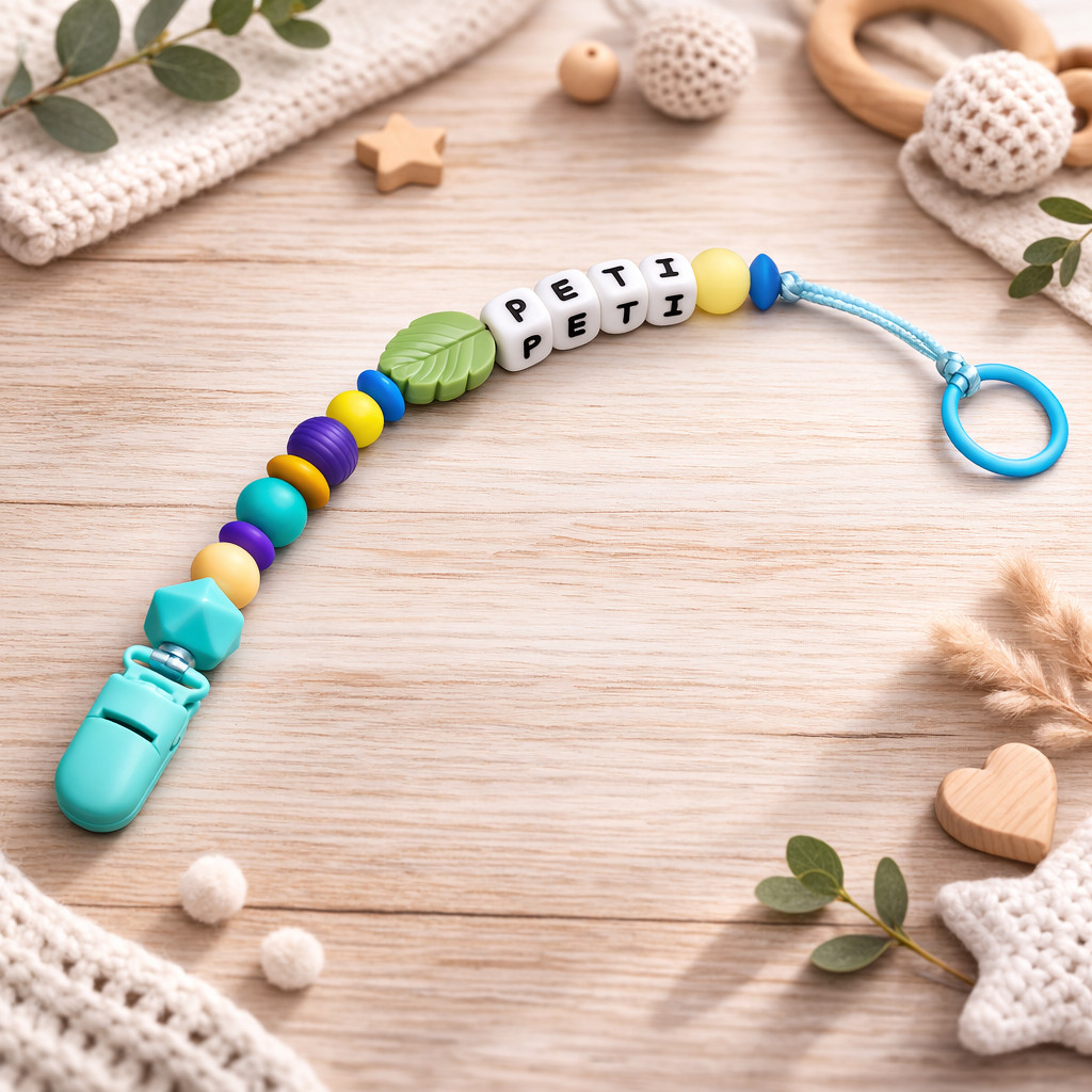 A lánc végéről a rágcsa levehető, így cumiláncként is használható.