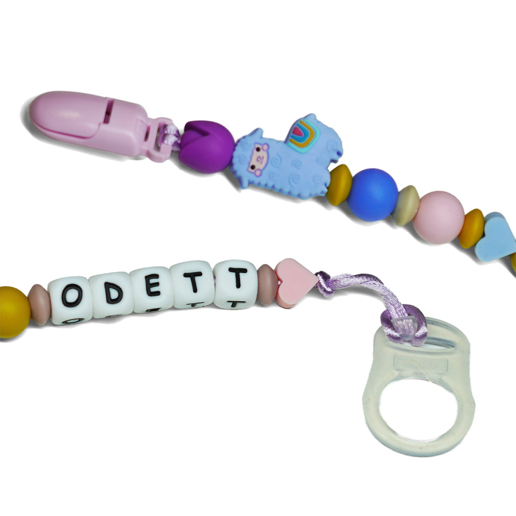 A lánc végéről a rágcsa levehető, így cumiláncként is használható.